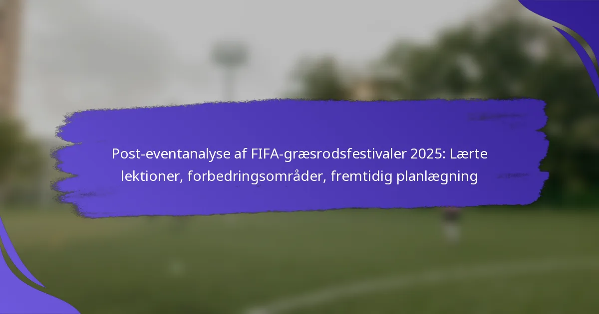 FIFA Grassroots Festivals 2025 gav værdifulde indsigter i effektivt engagement og områder, der har brug for forbedring. Nøglepunkter inkluderer vigtigheden af deltagerfeedback, innovative praksisser, der forbedrede oplevelser, og identificeringen af fælles udfordringer, der skal adresseres for fremtidige arrangementer.